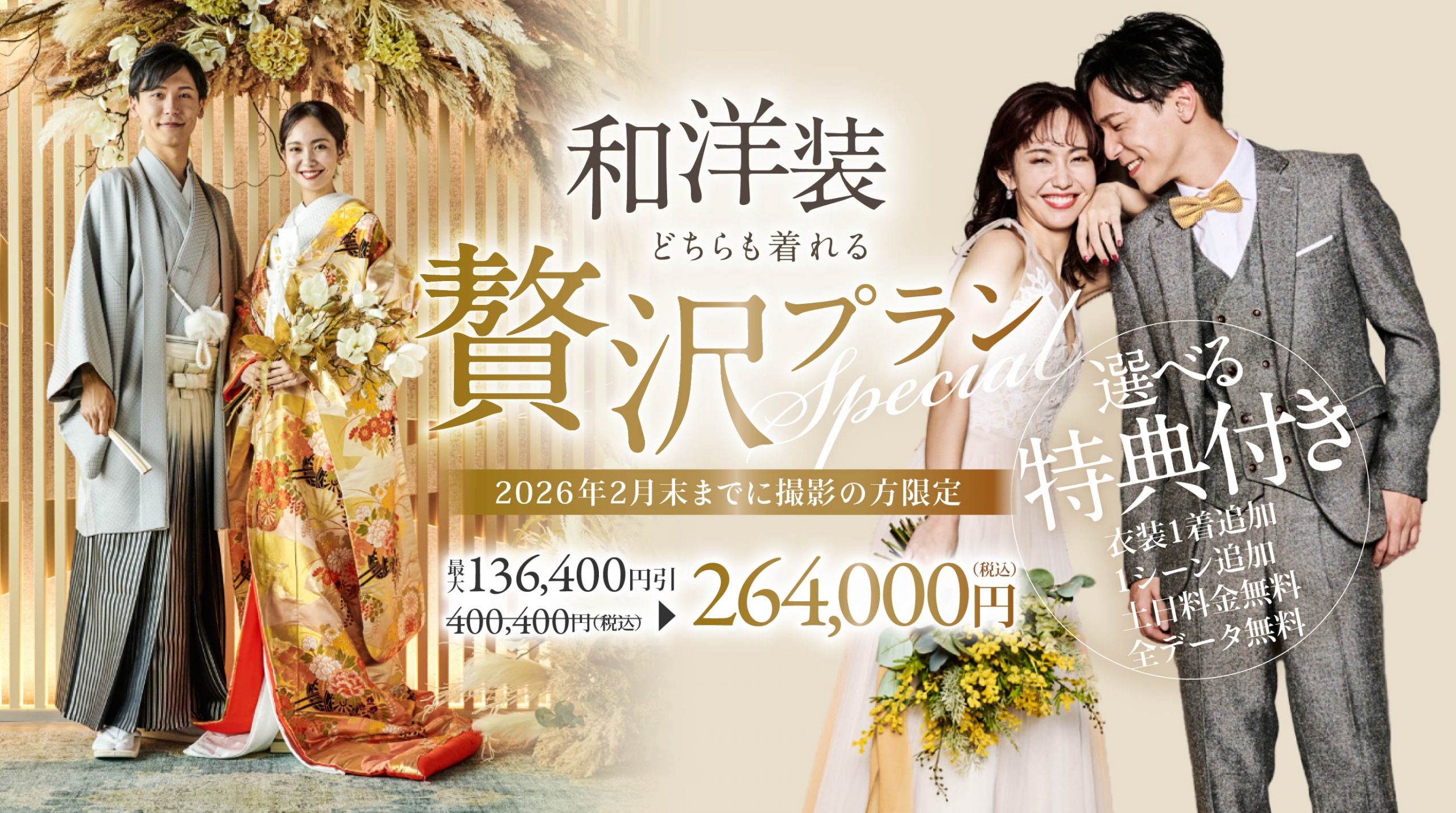 【贅沢フォト|2月末撮影まで】 <和装+洋装> 4大特典 + 今だけもう1つ特典プレゼント!