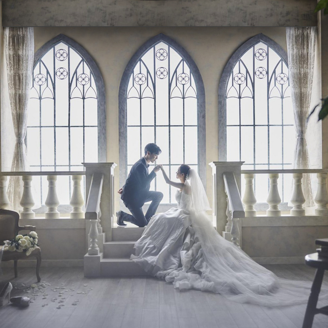 女性はウェディングドレス、男性はタキシードのスタイルになりますが、和装よりも衣装のバリエーションが豊富なので、色々なパターンでの撮影を希望される方にオススメです。さらに、ヘアメイクやアクセサリー等の合わせ方によっても印象がかなり変化するため、細かい部分にもこだわって演出することができます。