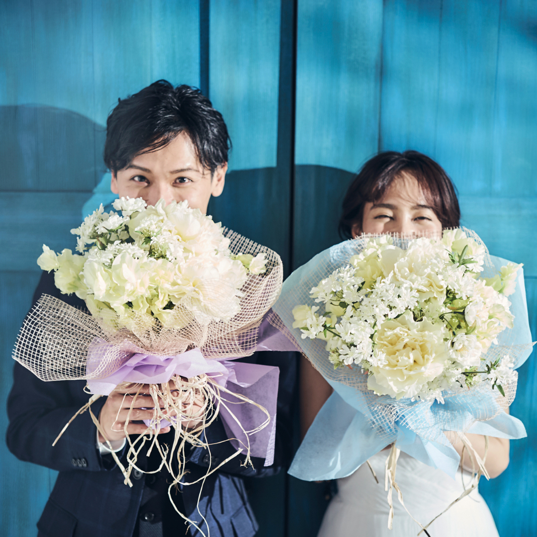 花を使った小道具は、フォトウェディングに華やかさを加える定番のアイテムです。おふたりの好きな花やシーンの雰囲気に合った花を、ブーケや花冠、花びらを使ったアレンジなど、さまざまな形で取り入れることができます。