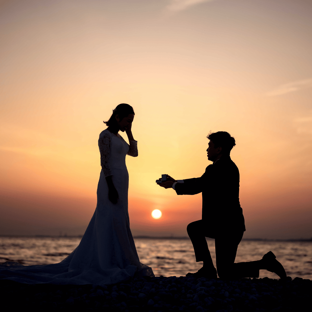遊び心のあるポーズは、フォトウェディングに楽しさの要素を加えます。ジャンプするポーズや、はしゃいだ表情をしたり、お互いに少し変な顔をしてみたりすることで、二人の自然な笑顔と楽しさが伝わります。