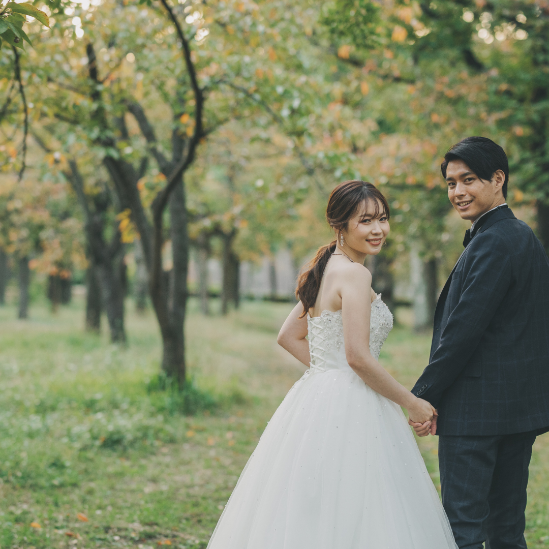 ブランズ心斎橋では、スタジオ内だけでなく、美しいロケーションを活かした撮影も行っています。例えば、大仙公園や緑地公園など、自然豊かな場所での撮影は、ナチュラルフォトウェディングに最適です。