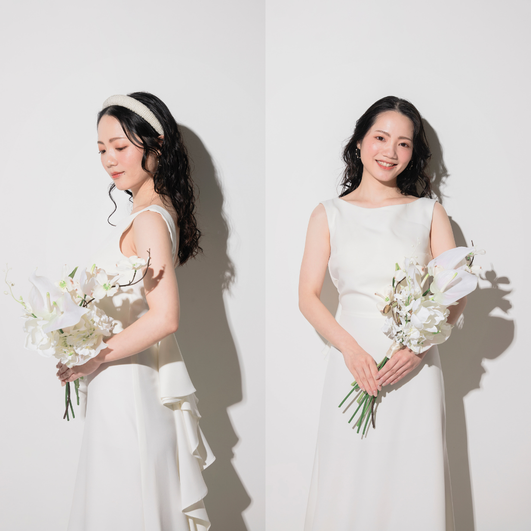 また、ヘアスタイルも、エレガントなアップスタイルや、ナチュラルなダウンスタイルなど、ドレスのシルエットや好みに合わせて自由に選ぶことができます。