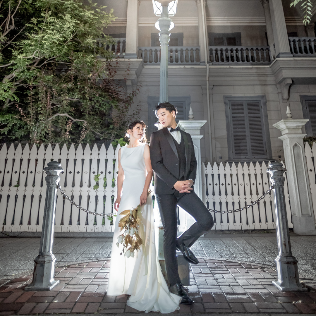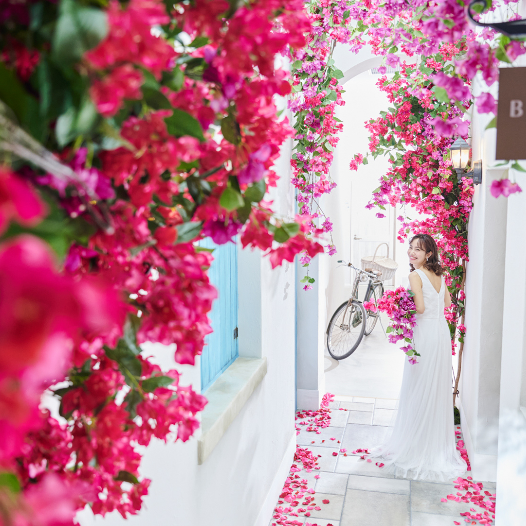 スレンダーラインのドレスは、美しいシンプルなデザインが写真映え抜群です。自然光や逆光などの光を生かした撮影では、ドレスのシルエットが美しく浮かび上がり、花嫁様の美しさを最大限に引き出します。