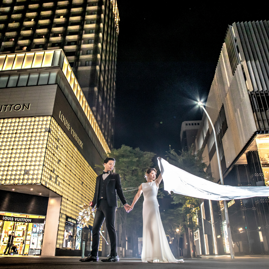 ブランズ心斎橋では、おふたりのお好みの場所でナイトロケーション撮影を行い、おふたりにとって唯一無二のフォトウェディングを体験することができます。
