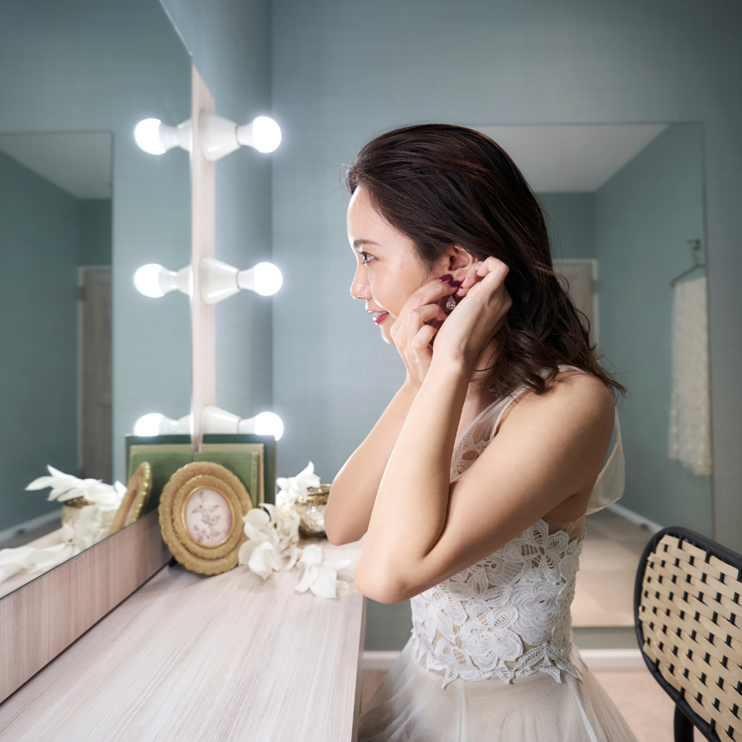 ブランズ心斎橋では、ドレスの種類や撮影スタイルを豊富に揃え、お一人おひとりのご要望に合わせたソロウェディングを叶えることができます。プランナーはもちろん、プロのヘアメイクやカメラマンがサポートするので、初めての方も安心してお任せいただけます。