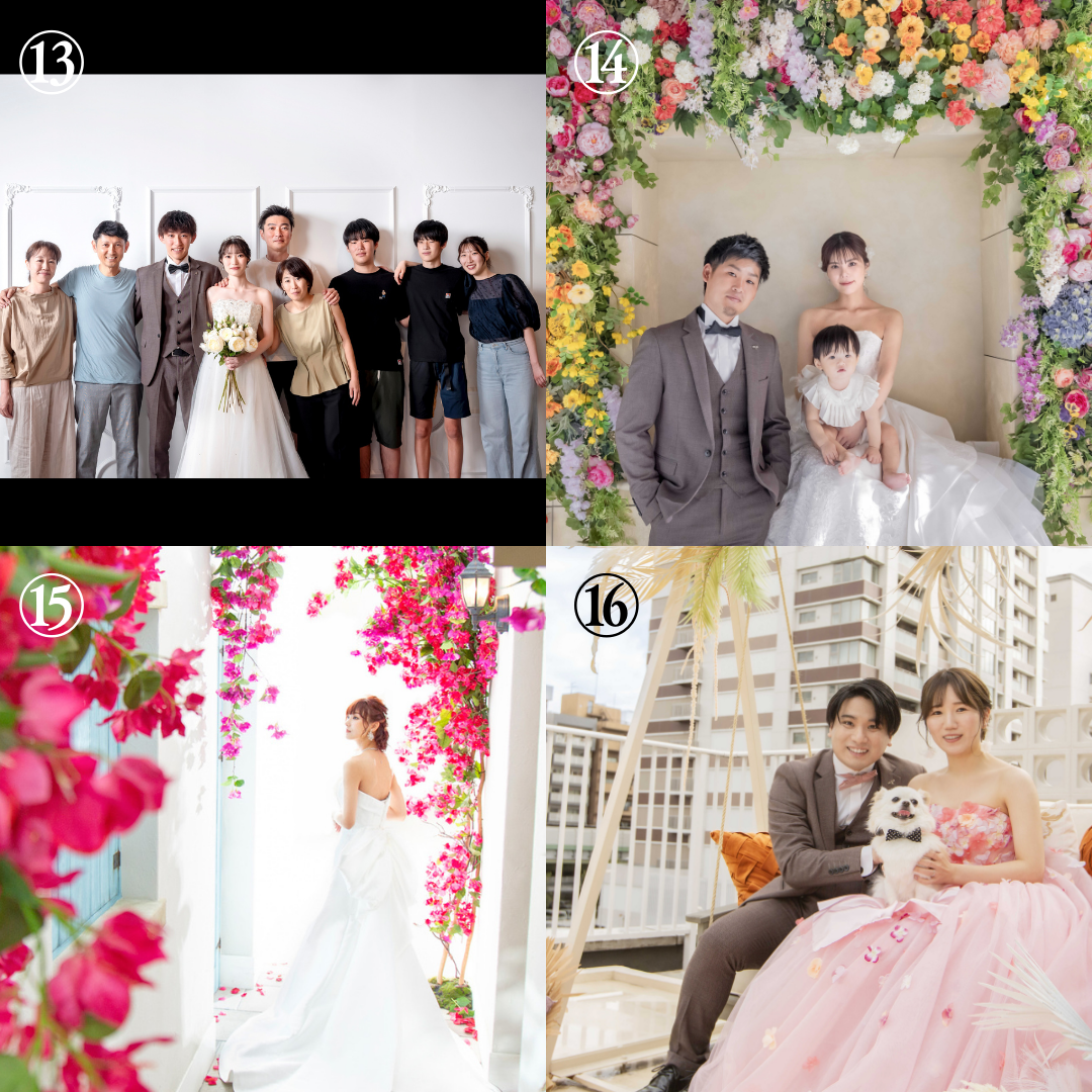 大切な家族と一緒に撮影するショットも人気。スタジオで家族写真を撮る機会って意外と少ないので、フォトウェディングのタイミングでの撮影はおすすめです。14.子どもとの初めての家族写真ショット