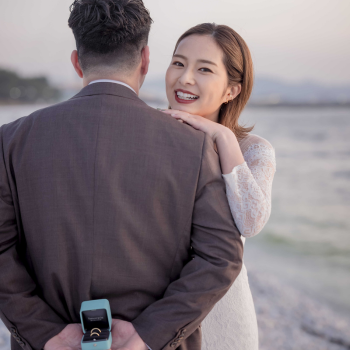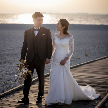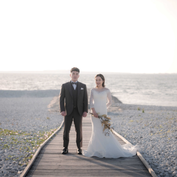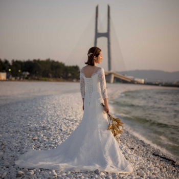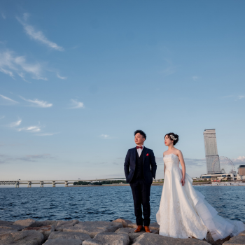 青い海と白い石が作り出す雰囲気は、フォトウェディングにぴったり。
