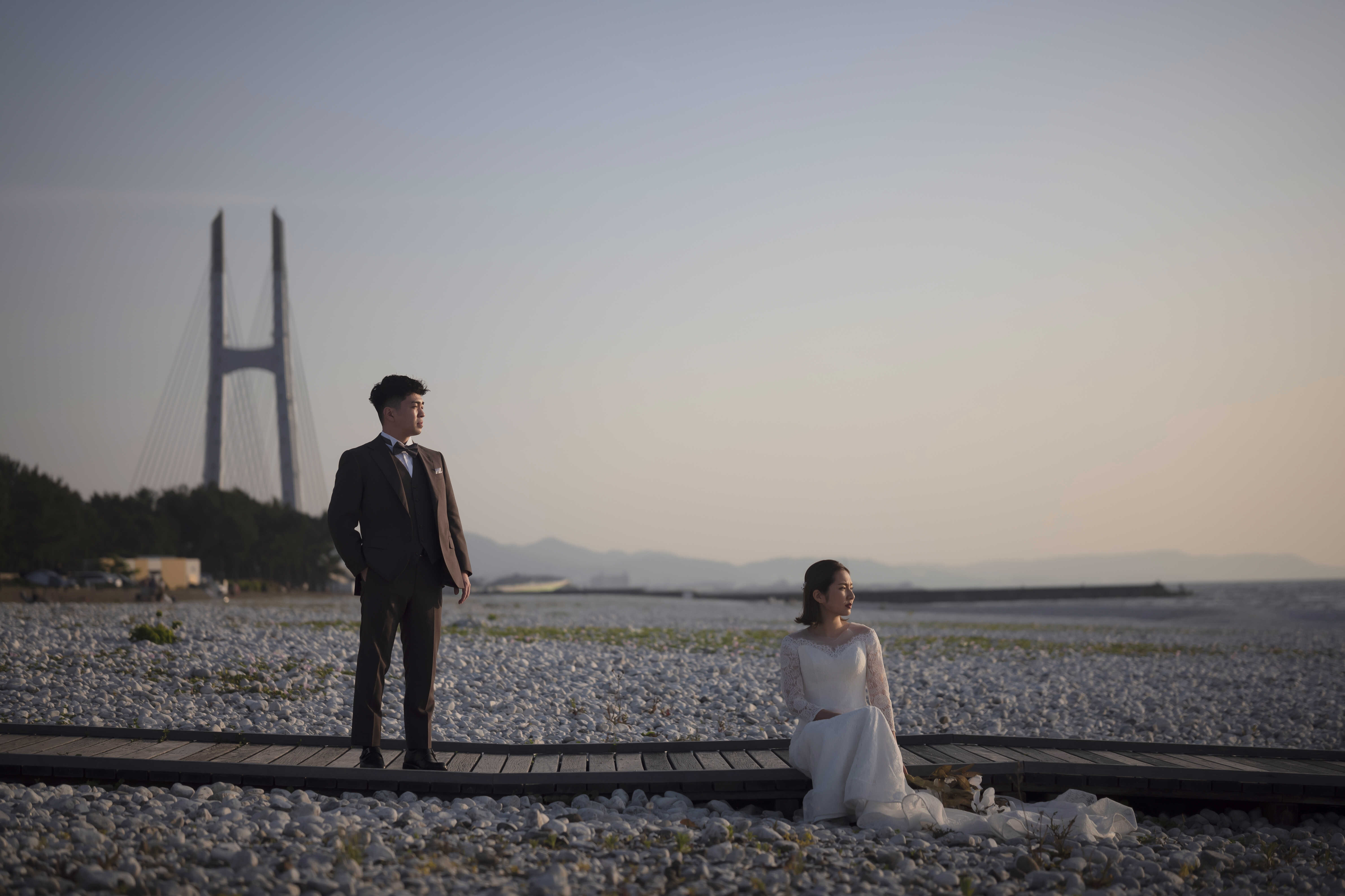 沈む太陽を背にしたシルエットショットは、マーブルビーチならではのロマンチックなカット。
