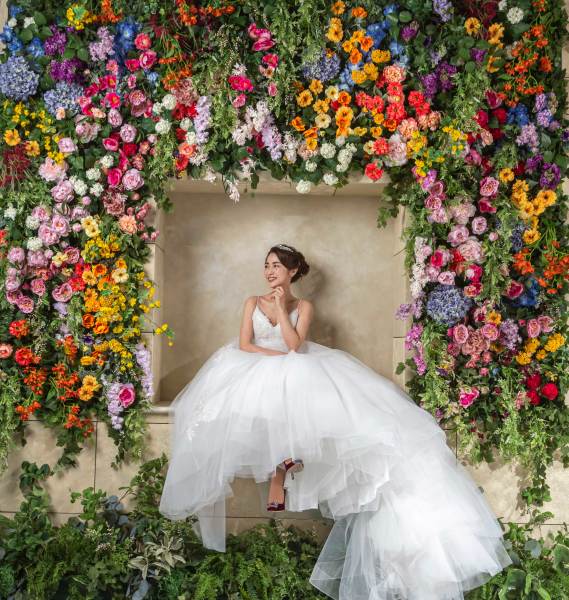 皆さまにご好評いただいているシーンの一つ、フラワーウォール♪