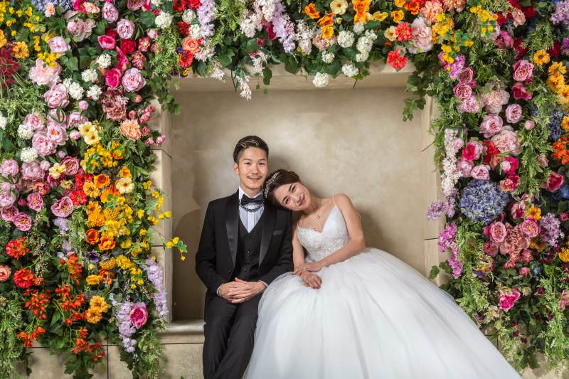 鮮やかなお花の前で映えるお写真!!