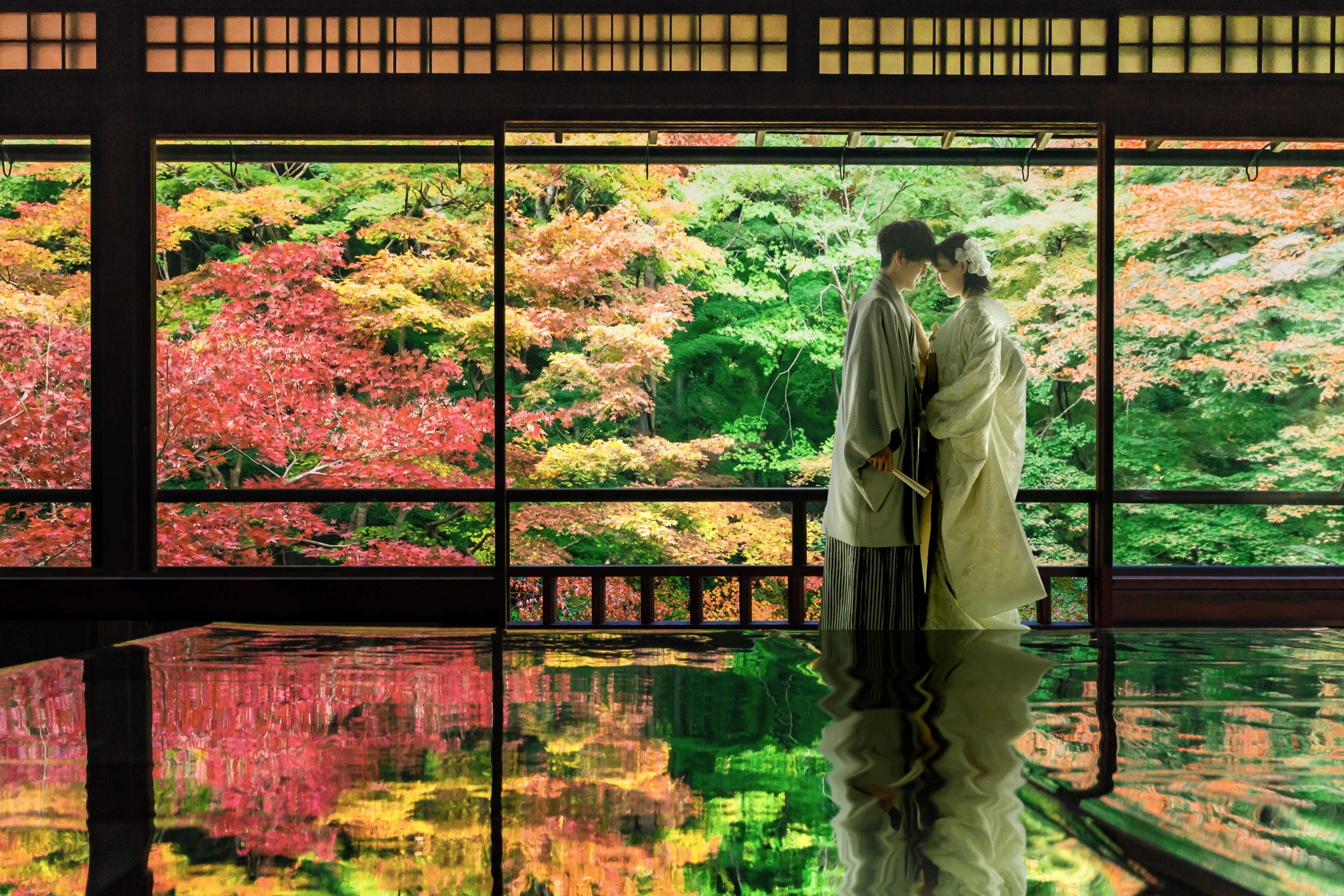 瑠璃光院での厳かな雰囲気での撮影。