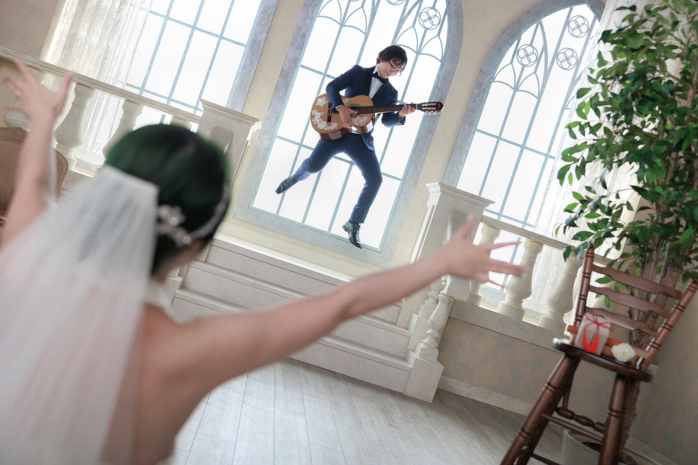 熱狂的ファンのご新婦様とご新郎様のギタージャンプ!キュートすぎます♡