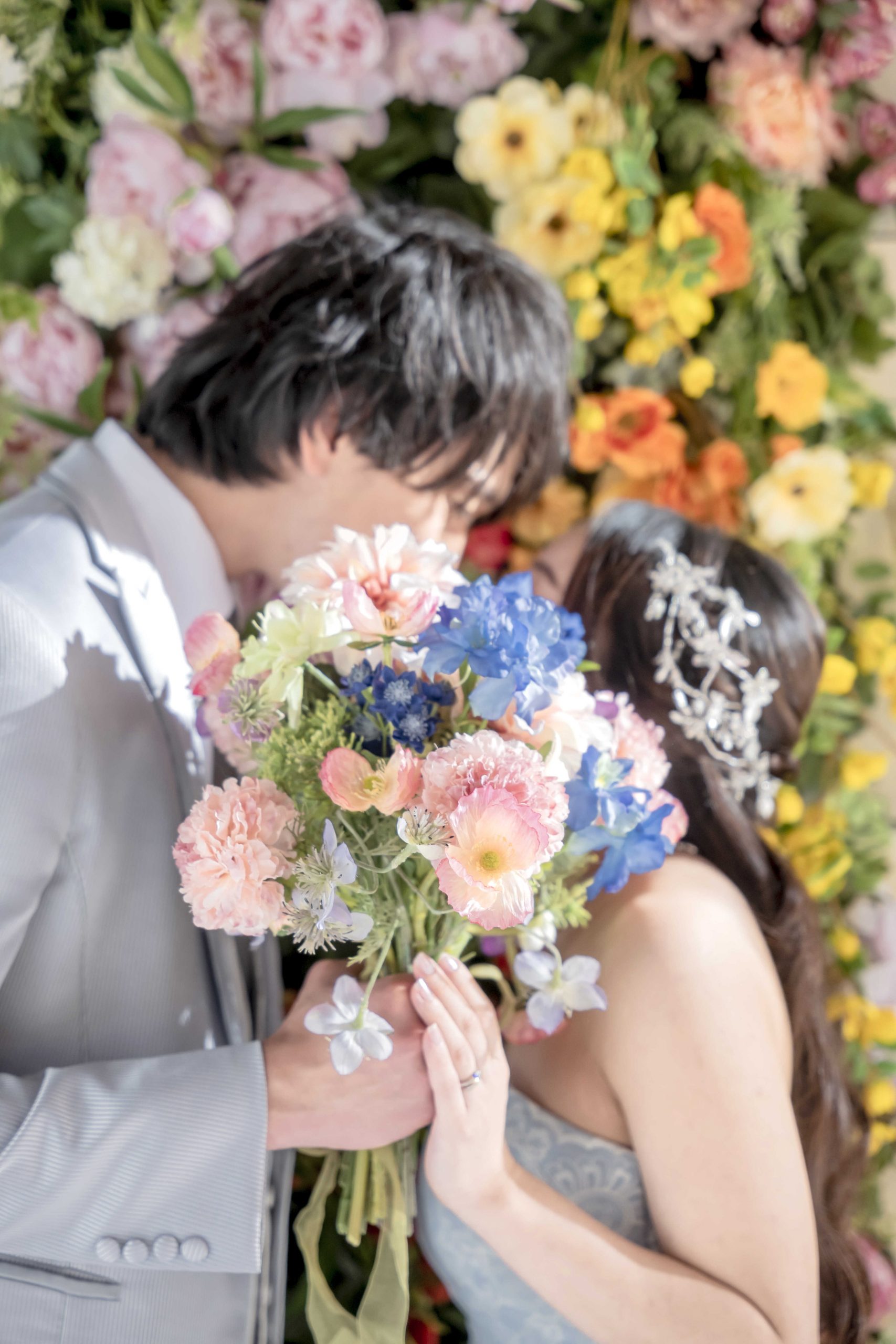 お気に入りのフラワーウォールでお顔隠し×キスショット♪