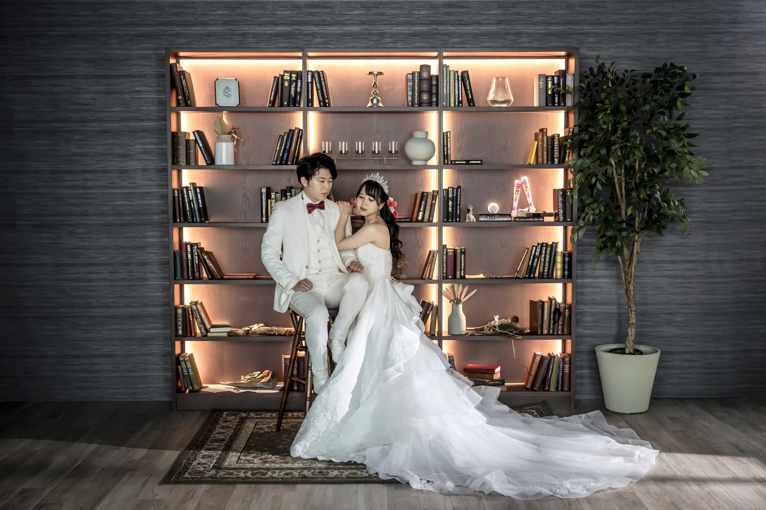 インテリジェンスなブックシェルフで二人の「スキ」が詰まったオリジナリティあふれる一枚!
