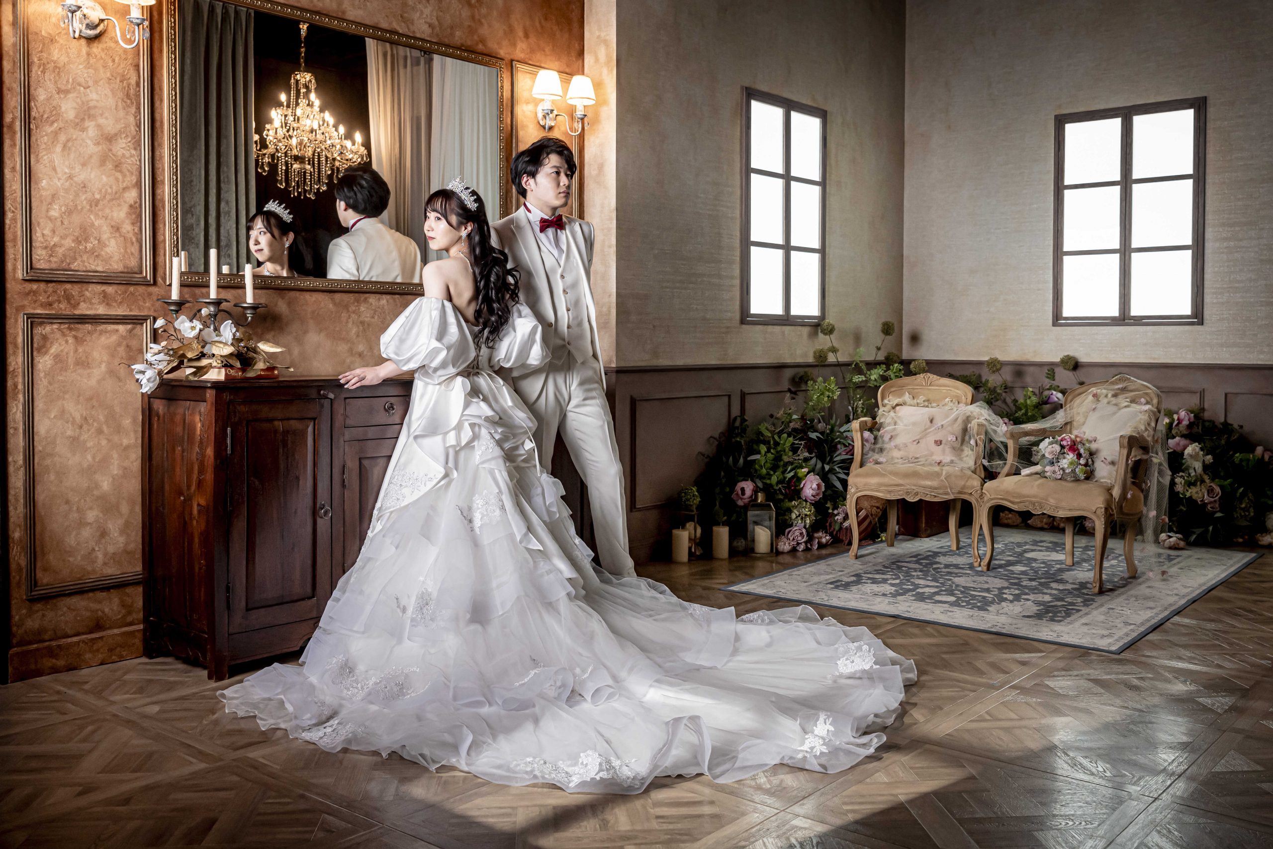 ミラーでの撮影は、おふたりの未来を映し出すかのよう。