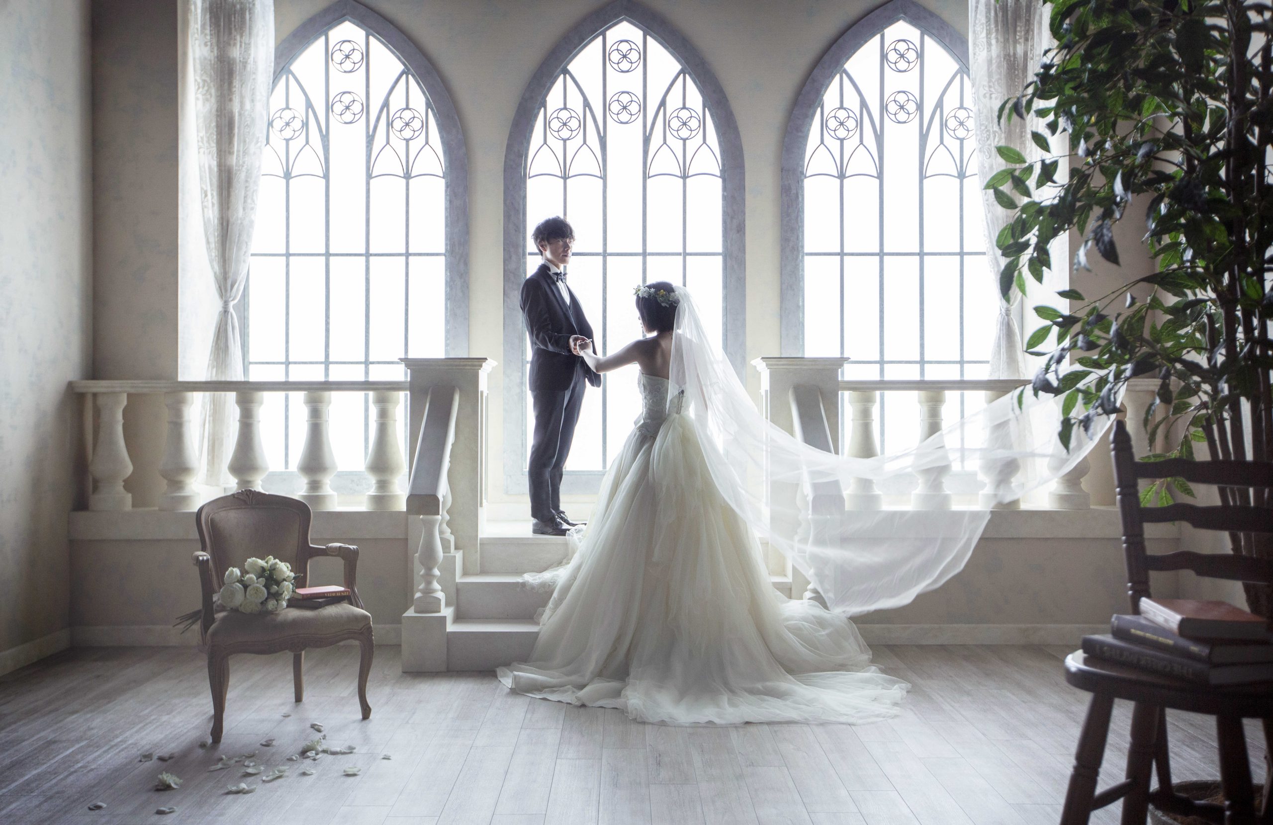 動きのあるベールが舞い上がる様も画になりますね。