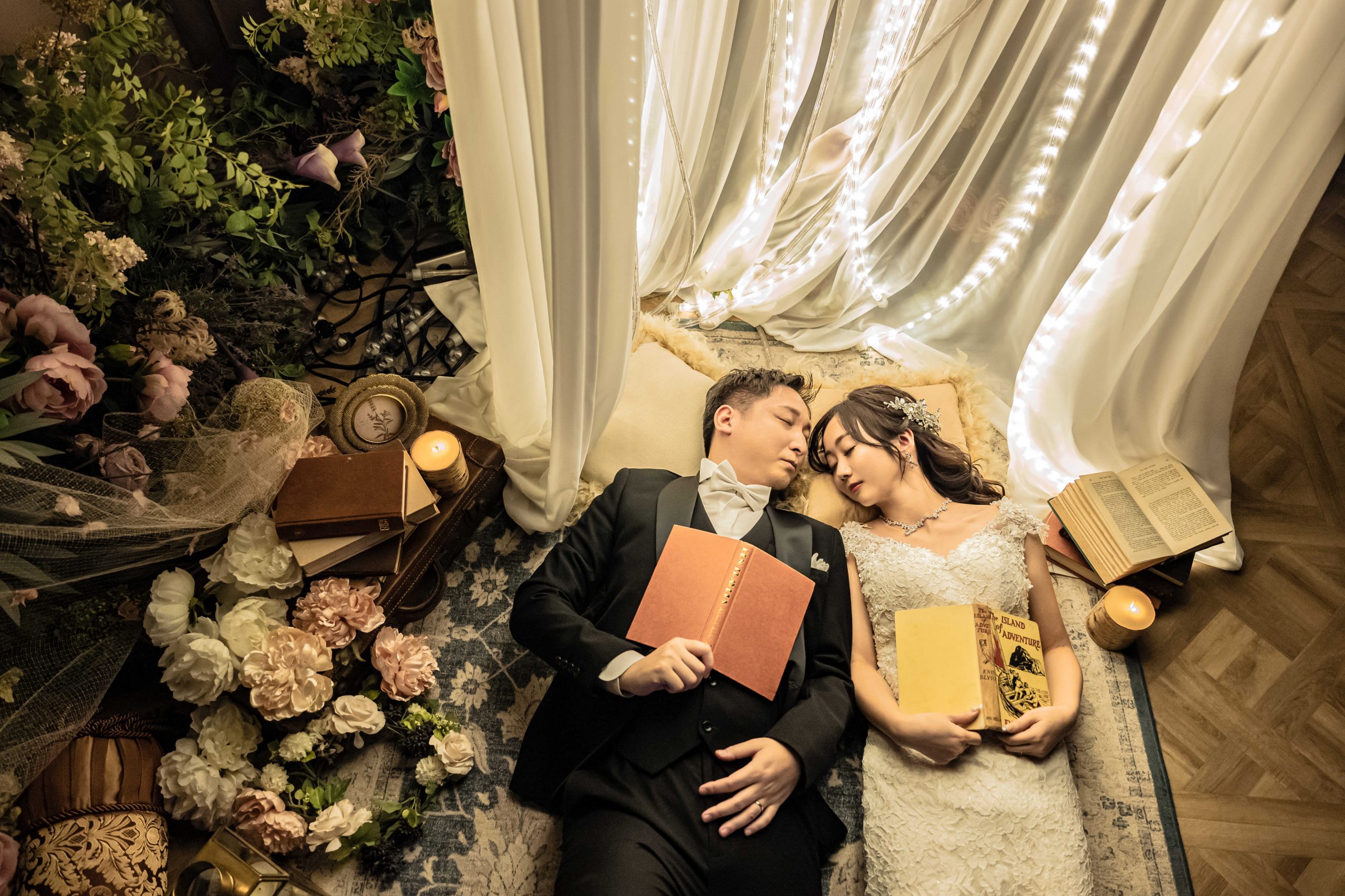 お二人が本を読みながらリラックスする、映画のような一瞬。