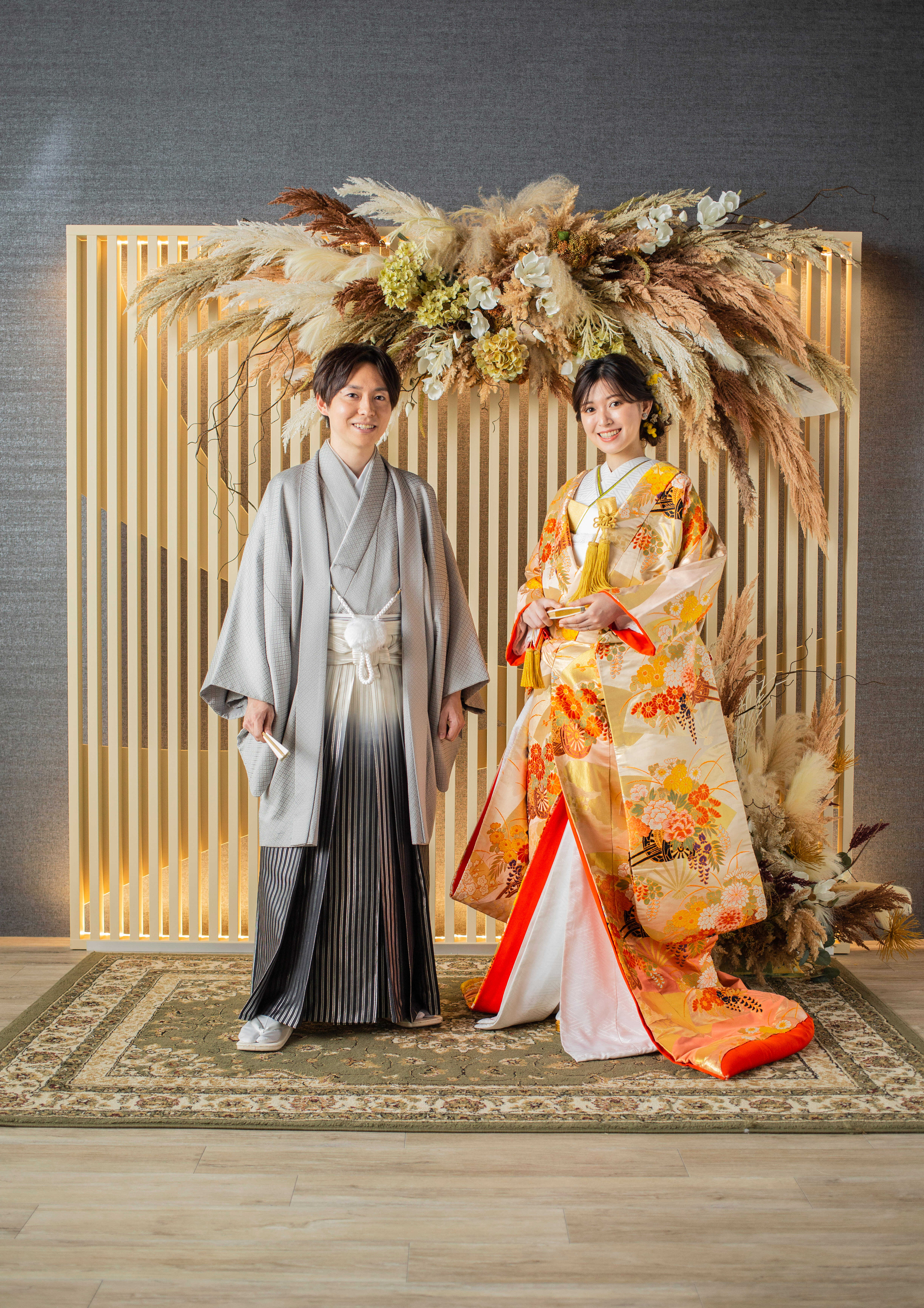 伝統的な和装とお二人の凛とした姿勢が、こだわりを感じさせる一枚。