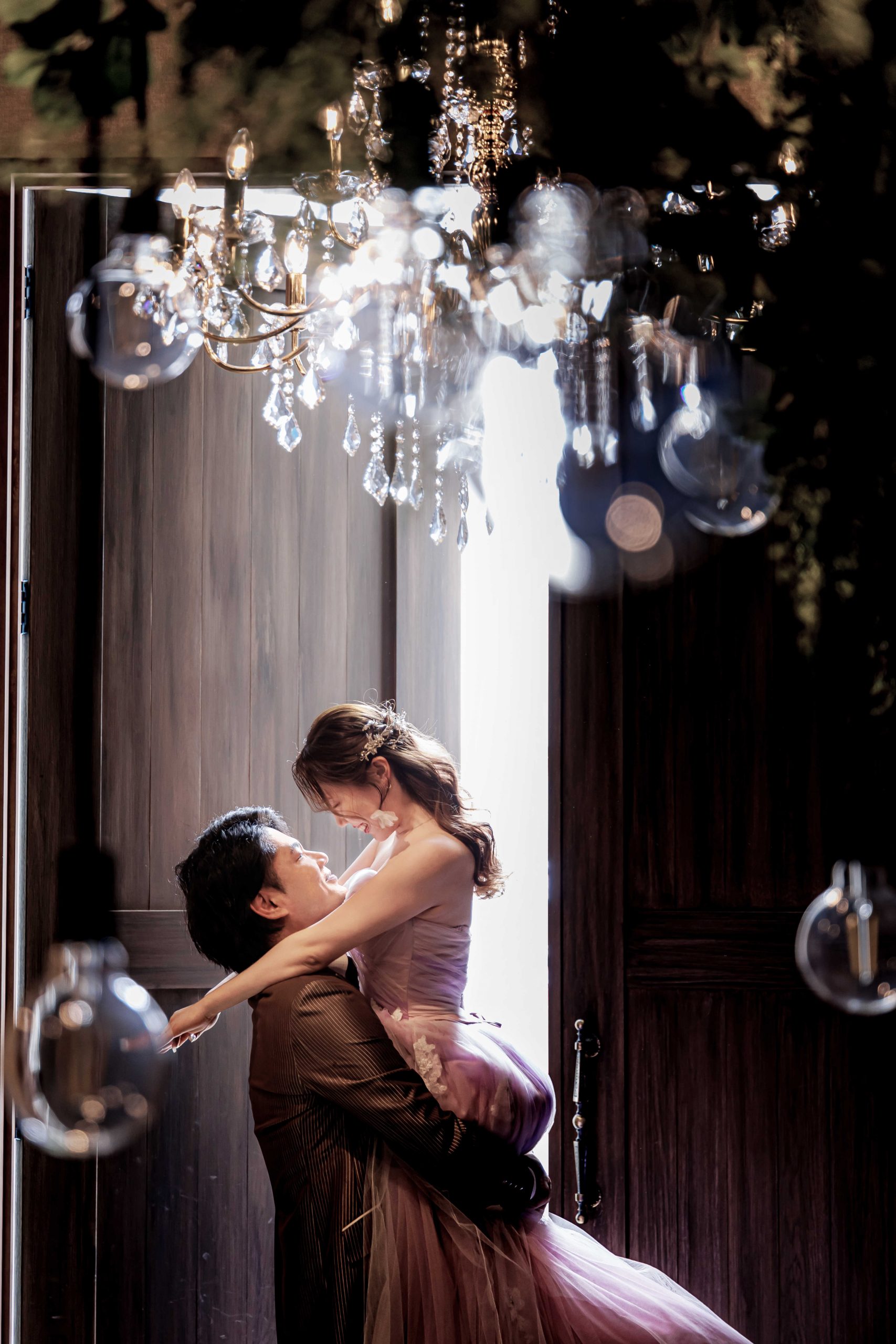 新郎様の背中にそっと寄り添い、嬉しそうな表情を浮かべる新婦様の姿が微笑ましい一枚.。○