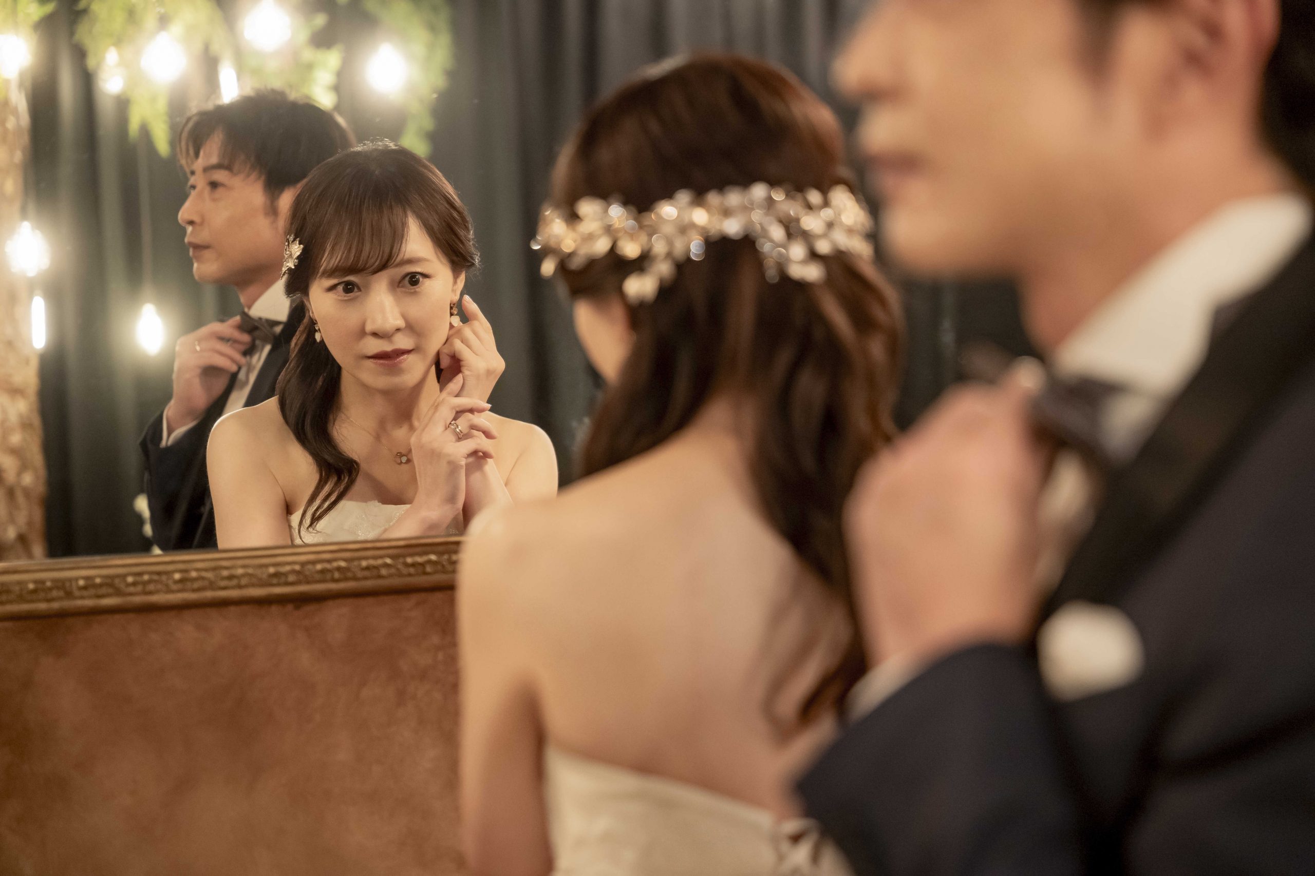 新婦様が耳元のアクセサリーをそっと触れる仕草は、特別な日の準備中を垣間見るような一瞬♪