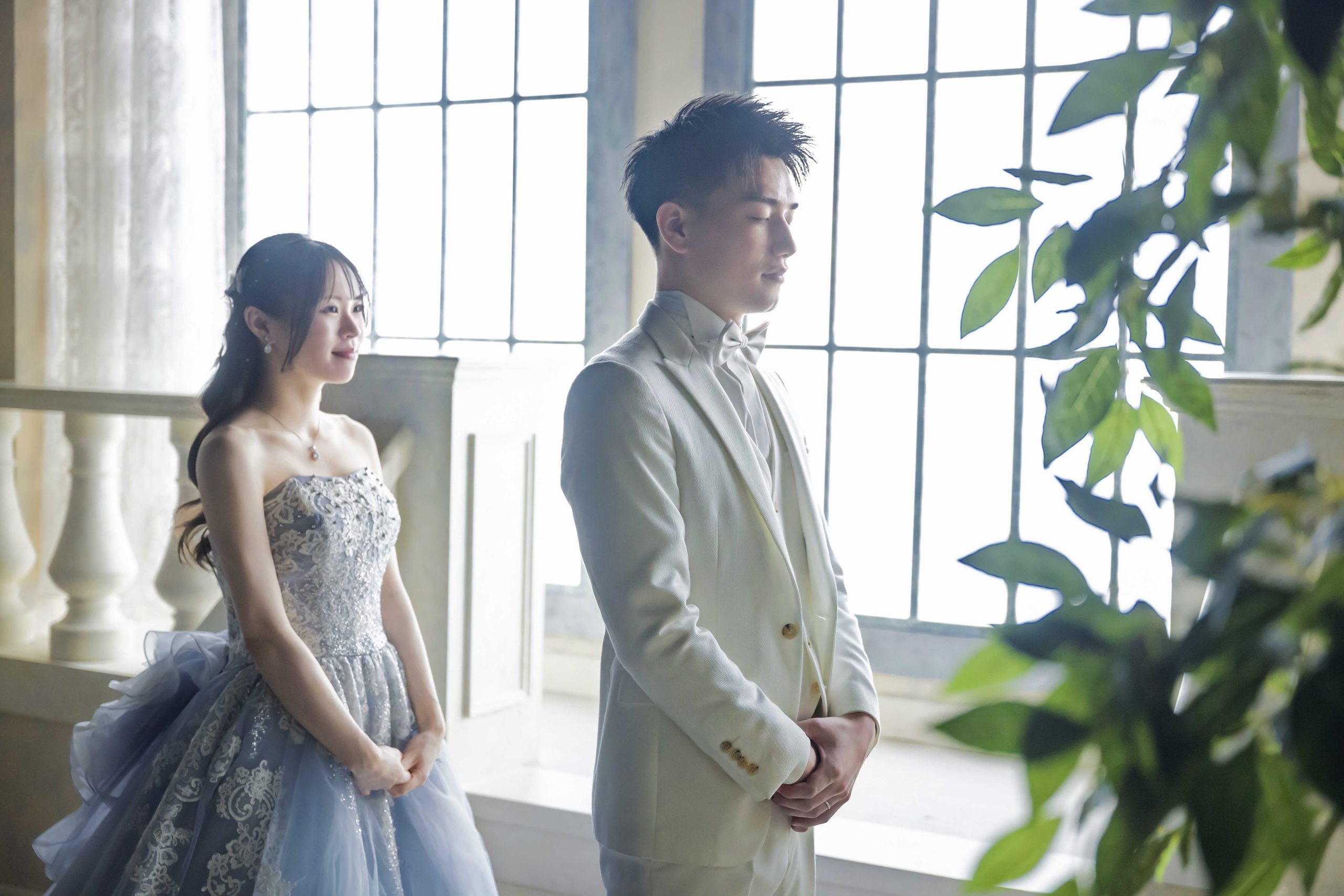 新郎様の胸にそっと手を添える新婦様。