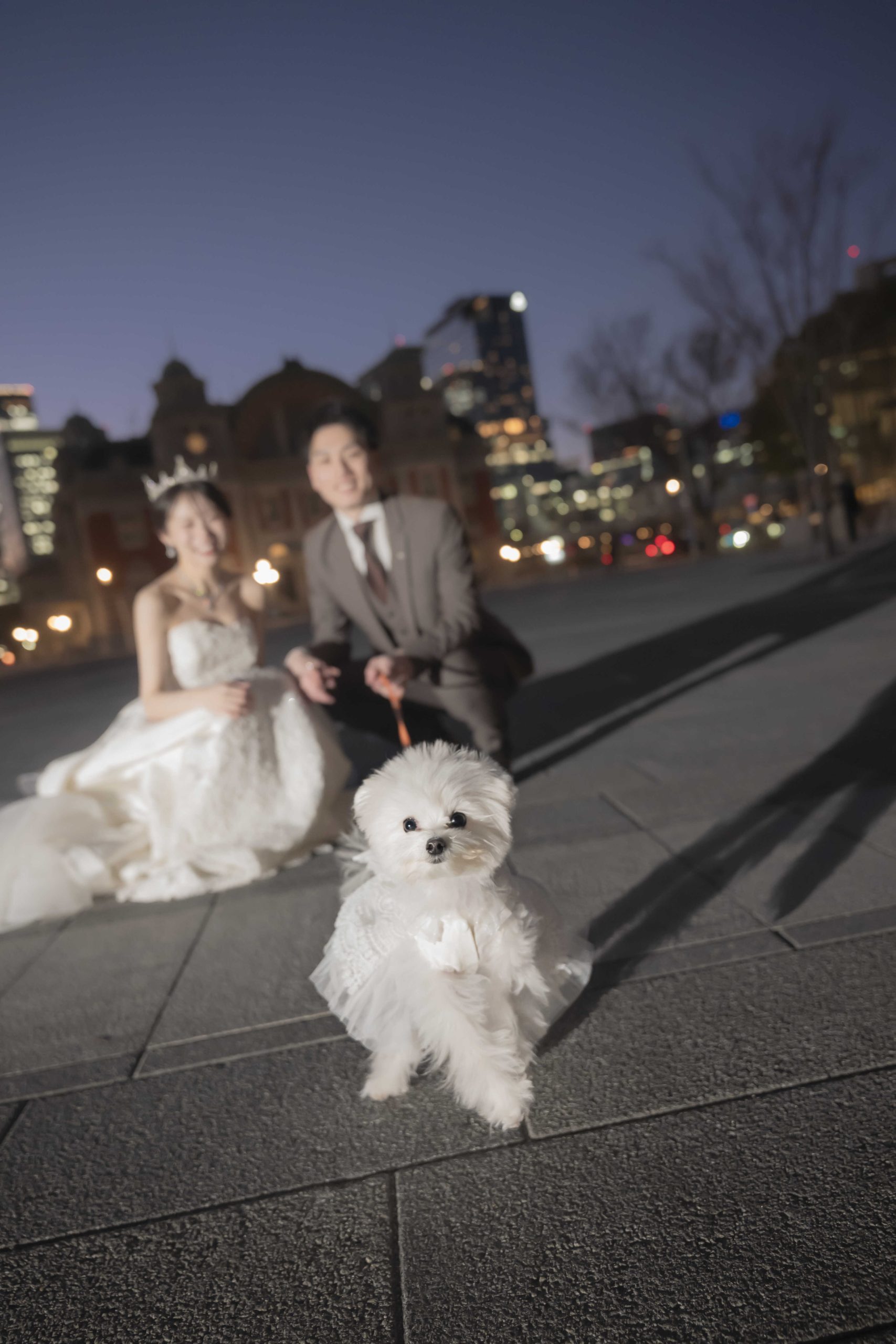 背景でぼんやりと微笑む新郎新婦様。特別な日の思い出を、可愛らしい視点で残すユニークな一枚です♪